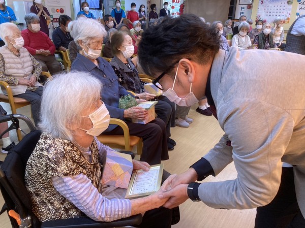 節目の年を迎えられた入居者さまには、施設長よりお祝いの言葉と
