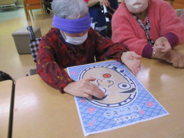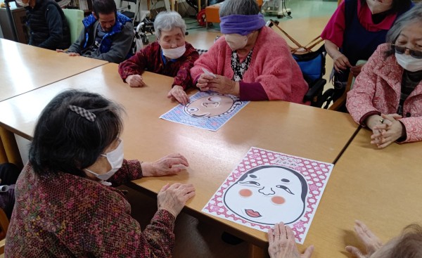デイサービスセンター海峡つばさ館では、日本の伝統的な遊び「福笑い」に挑戦しました!