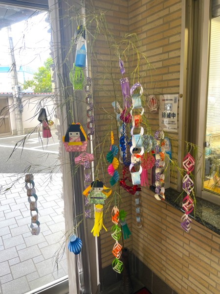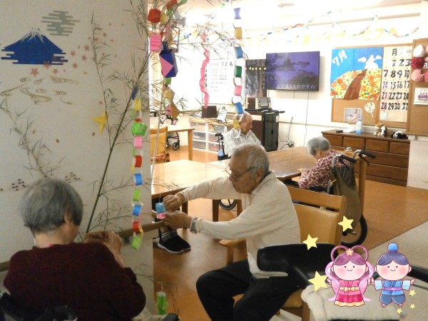 七夕の準備に小倉つばさ館デイサービスご利用者さま、従業員にも協力していただき、ステキな七夕が出来ました