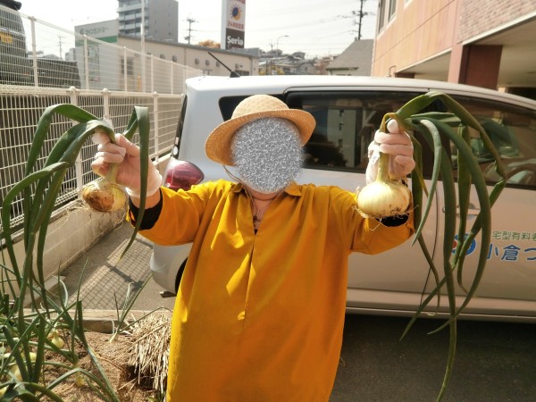 収穫した たまねぎはデイサービスでクッキングして